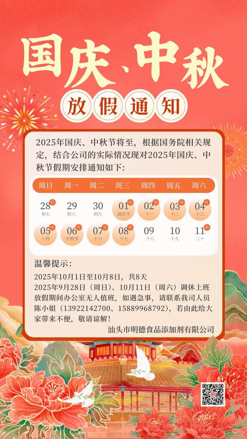 國慶、中秋放假通知,敬請留意!