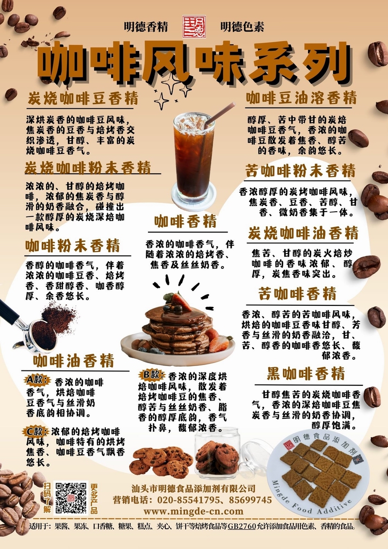 明德咖啡風(fēng)味系列香精 | 多層咖啡醇香 覆蓋豐富應(yīng)用場(chǎng)景汕頭市明德食品添加劑有限公司推出的咖啡風(fēng)味系列香精,涵蓋多種焙炒、奶香、焦糖及深度烘焙調(diào)性,滿(mǎn)足飲品、烘焙、糖果、乳制品等多領(lǐng)域的咖啡風(fēng)味需求,為B端客戶(hù)提供穩(wěn)定、真實(shí)的咖啡香氣解決方案。